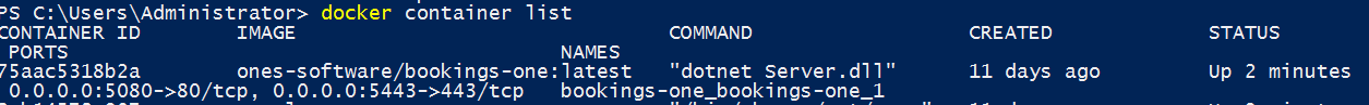 docker container listand confirm that Bookings ONE is running.