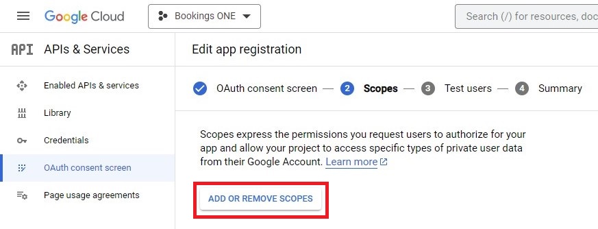 ADD OR REMOVE SCOPES.