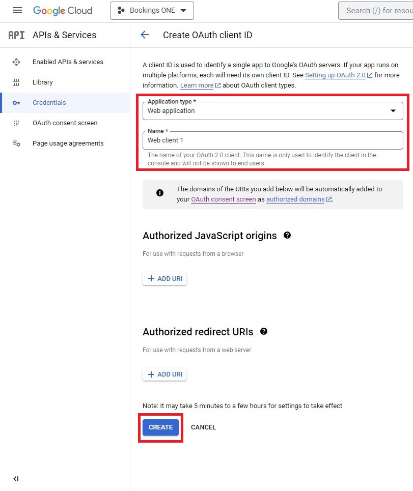 CREATE CREDENTIALSand selectOAuth client ID.