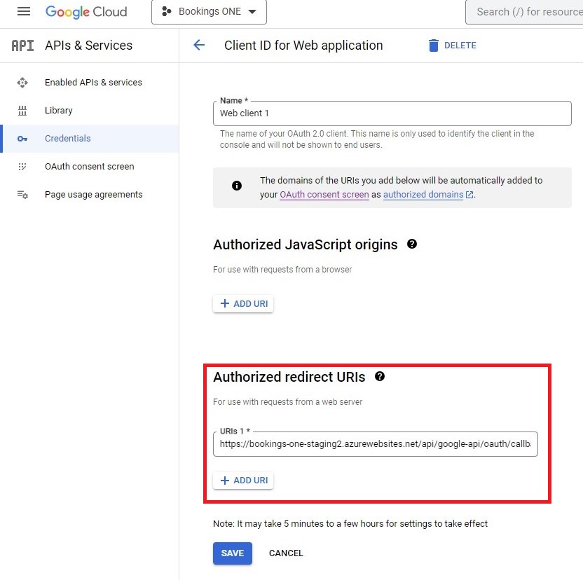 CredentialsofAPIs & Services. - Edit the OAuth 2.0 Client ID.