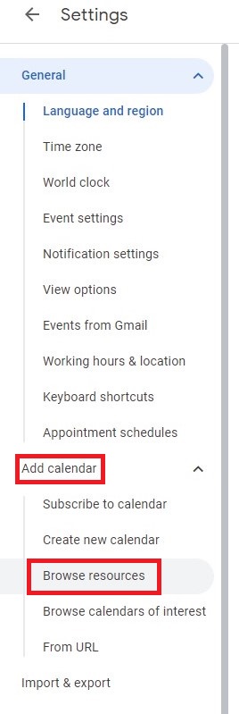 Add calendarand go toBrowse resources.