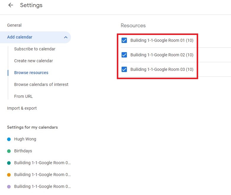 Add delegated account. - Select the account that you have subscribed the resources calendar.