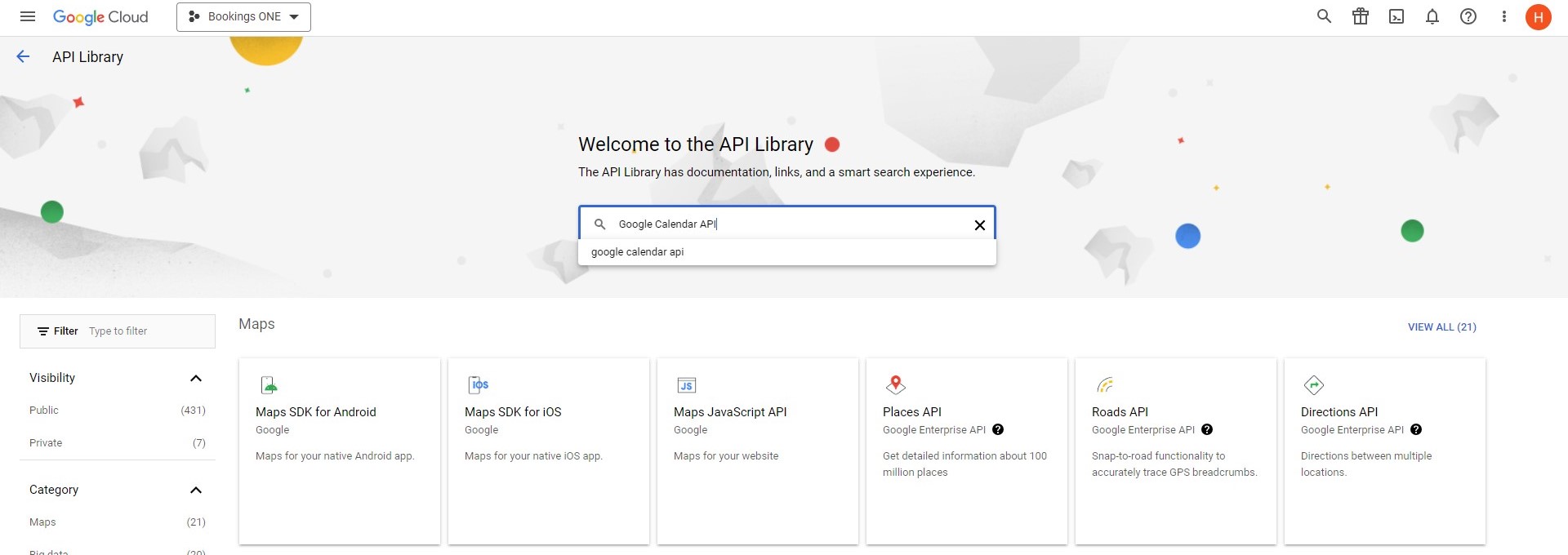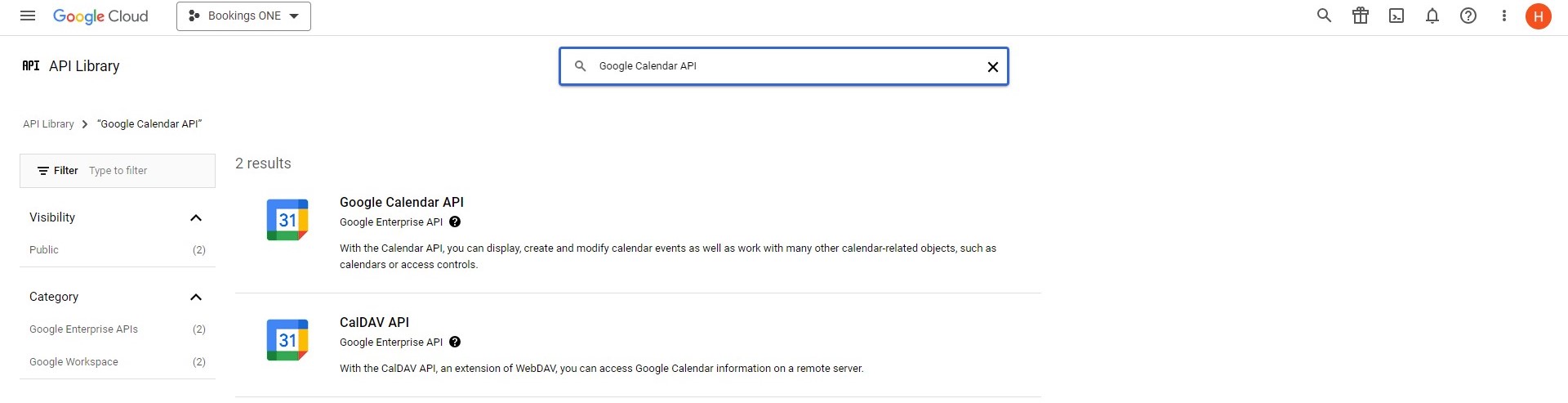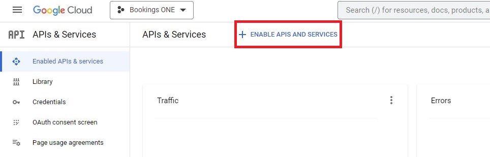 ENABLE APIS AND SERVICESand searchGoogle Calendar API.