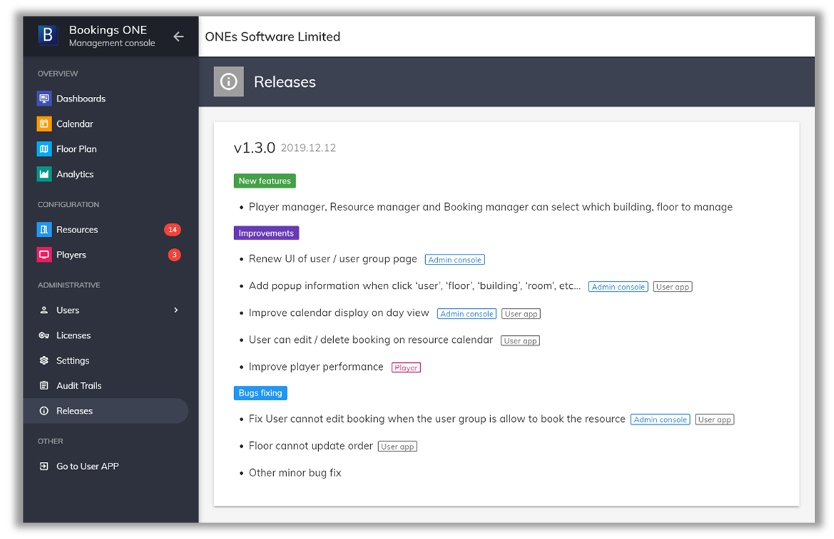 Release notes is delivered to user when an update is released. This page will briefly describe the new features, improvement, bugs fix in each version release.