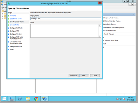 - Enter a display name for the relying party. The name is just for naming and will not affect Bookings ONE functionality.