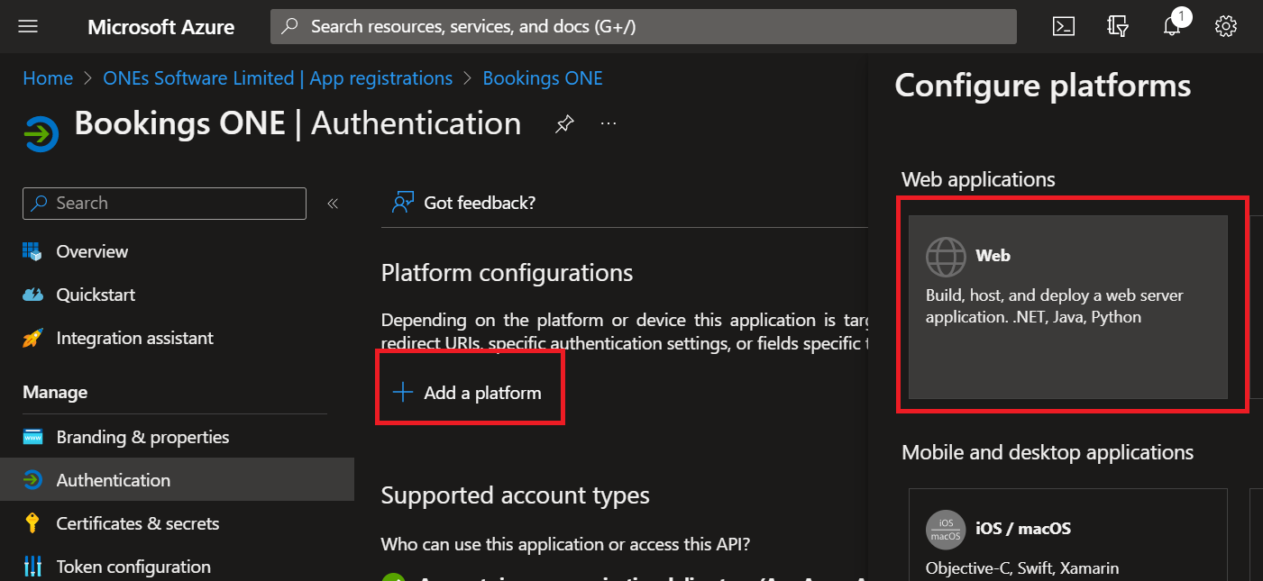 - Enter a name for the app registration. The name is just for naming and will not affect Bookings ONE functionality.