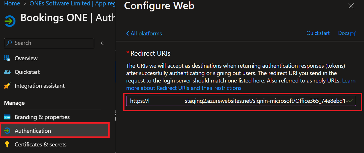 Redirect URIsin the Azure Portal AAD tenant. ClickConfigure