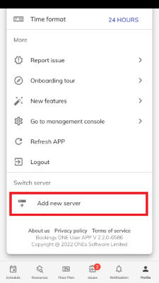 - 新しいサーバーを追加するときは、ONES が提供する基本的なクラウド ドメイン名を追加するか、自分で定義したカスタム ドメイン名を追加するかを選択できます。 サーバーに接続するには、ドメイン名フィールドにドメイン名を入力する必要があります。 サーバーを追加すると、アプリはそのドメイン名のログイン ページを表示します。