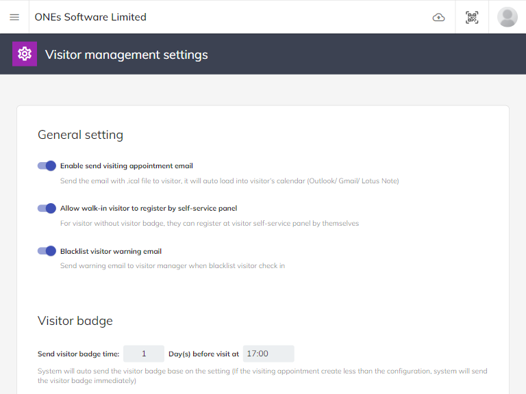 - 過去の訪問者バッジがまだ「訪問中」状態にある場合、そのバッジのステータスを自動的に「訪問終了」に変更します: この設定が有効にすると、過去の訪問者バッジがまだ「訪問中」状態にある場合、そのバッジのステータスを自動的に「訪問終了」に変更します。