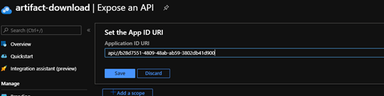 Expose an API. ClickApplication ID URI Set>Save. Make note of theApplication ID URI. This is the WS-Federation middleware's Wtrealm: