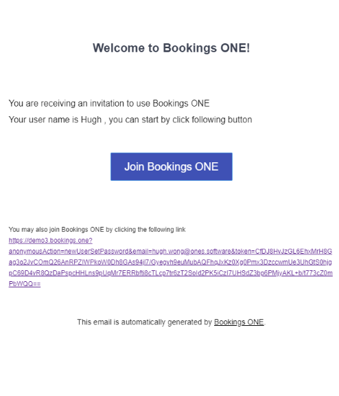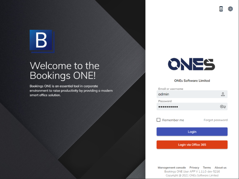 為了能夠使用 Bookings ONE 用戶APP,您首先需要擁有一個用戶帳戶。 請聯繫グローバル管理者或用戶管理者獲取用戶帳號。