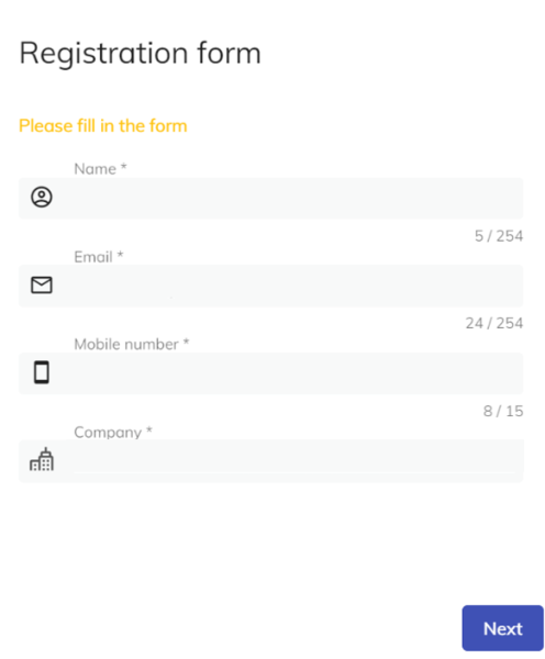 事前登録が有効になっている場合、来客が事前登録リンクをクリックすると、訪問目的、個人情報やアンケートを入力できます。。