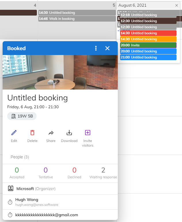 予約を立てるか招待されると、関連する予約がカレンダーに表示されます。 [予約] をクリックして詳細を表示できます。