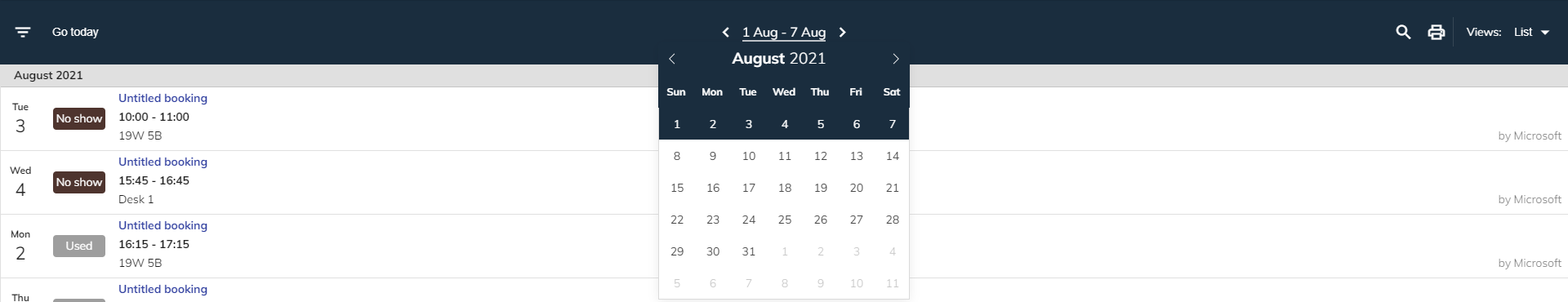 :::ヒント 別のユーザー カレンダーに切り替える 予約を作成し、他のユーザーを認証するための追加のアクセス許可が委任されている場合は、カレンダーを変更する他のユーザーを選択するためのドロップダウン メニューが表示されます。