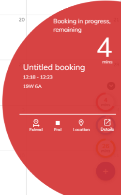 - 赤: このリマインダーは、予約の残り時間を示します。 早めに終了したり、時間を延長したりできます。