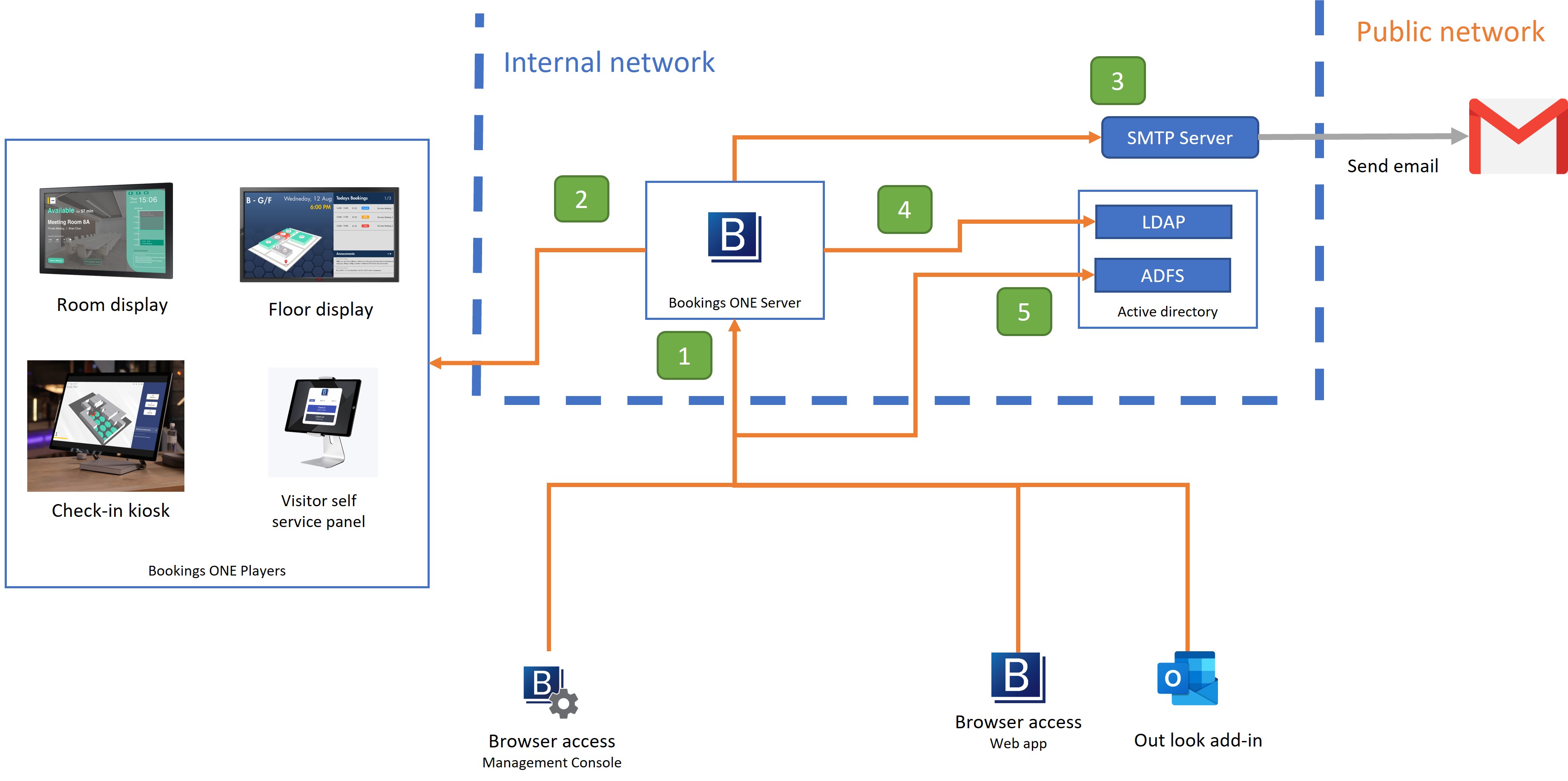 由 Bookings ONE伺服器 去到 Bookings ONE播放器