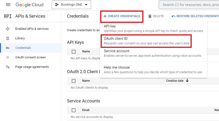 建立憑證,然後選擇OAuth 用戶端 ID。