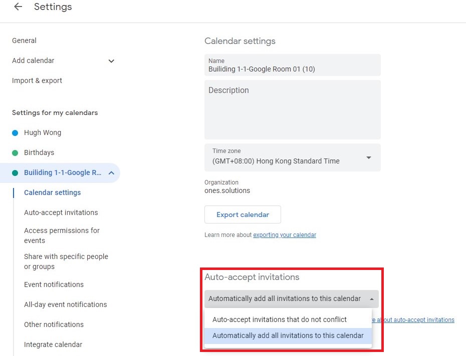 自動接受邀請,並選擇自動加入所有邀請到此日曆。