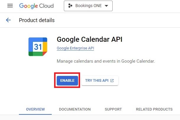 Google Calendar API,然後點擊啟用。