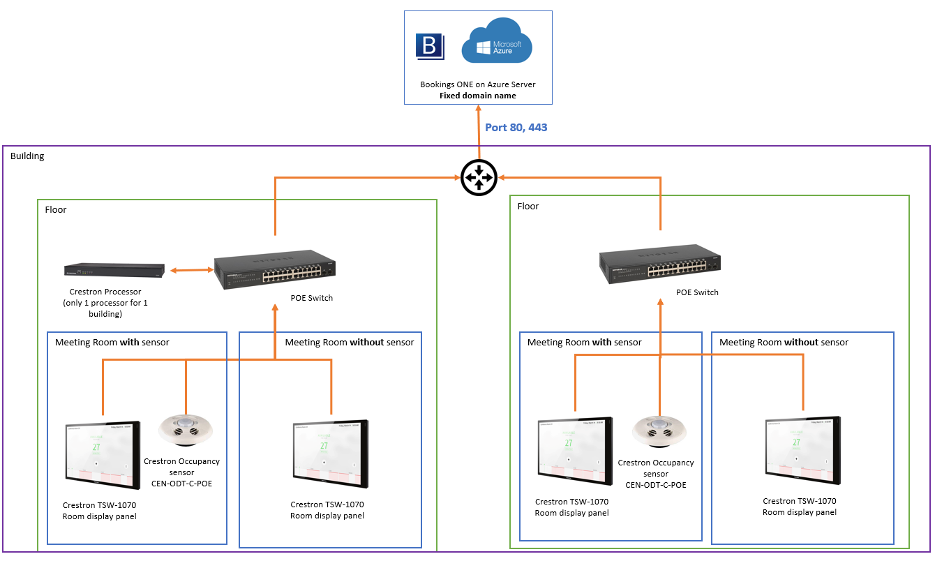 以下是 Crestron CEN-ODT-C-POE 傳感器與 Bookings ONE 集成的示例。