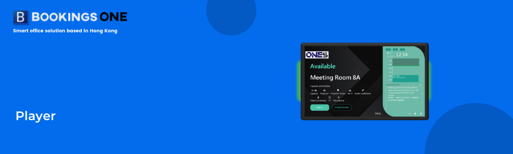 - 房間顯示器: 顯示分配房間的實時狀態和控制,如登入、登出、延長預約和預約附近的其他房間。(最多:每個顯示兩個房間)。