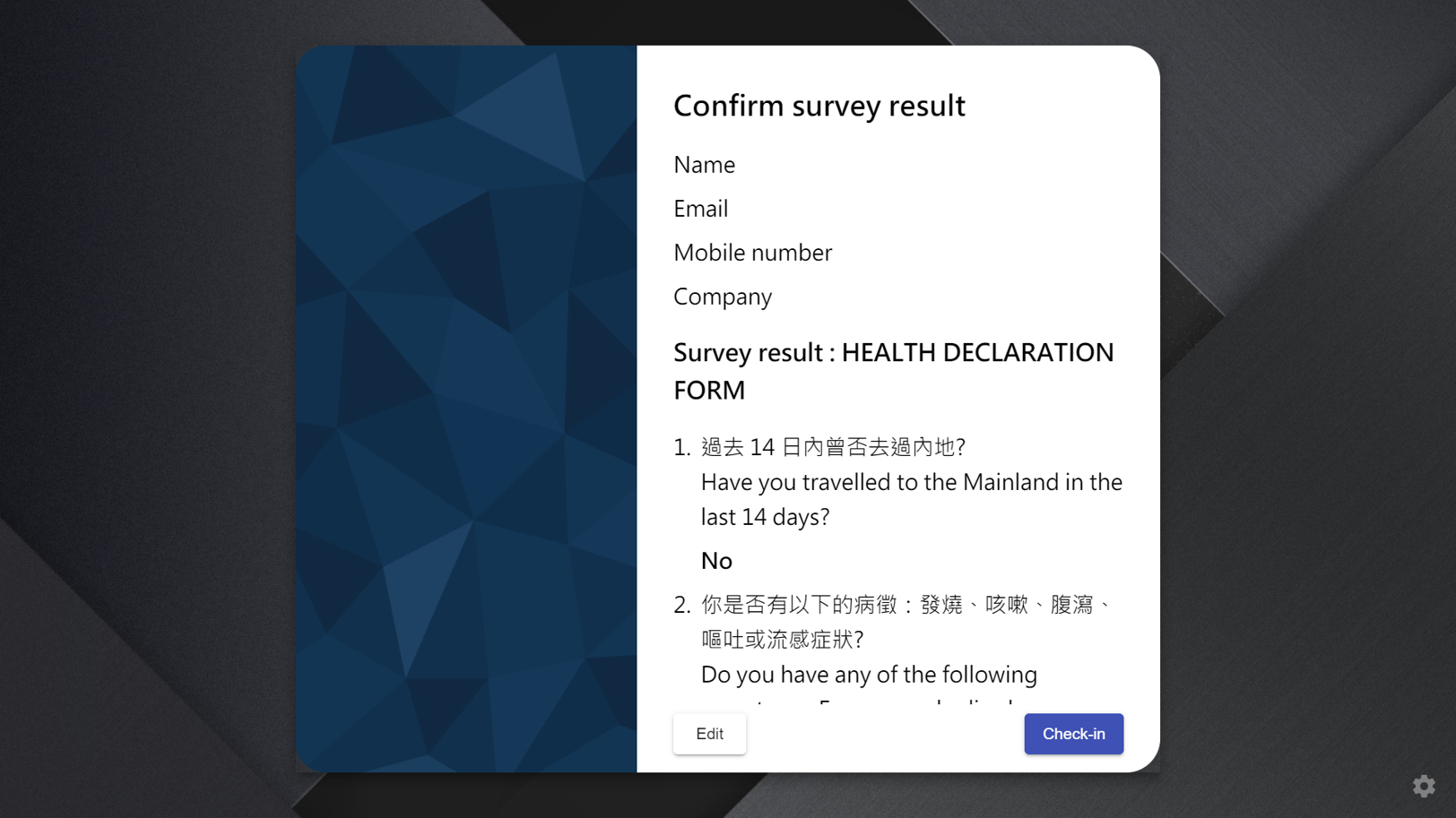 如果訪客沒有做預先登記,那麼他們將被要求填寫他們的個人信息,並在現場完成問卷(如有必要)以進行登記。