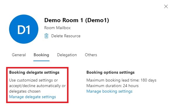 Select delegates who can accept or decline booking requestsand add an email address that exists in Bookings ONE to the "Select delegates" column. This email will be used to receive system emails for pending system validation purposes, so it is recommended to use a dummy email address for this setting.