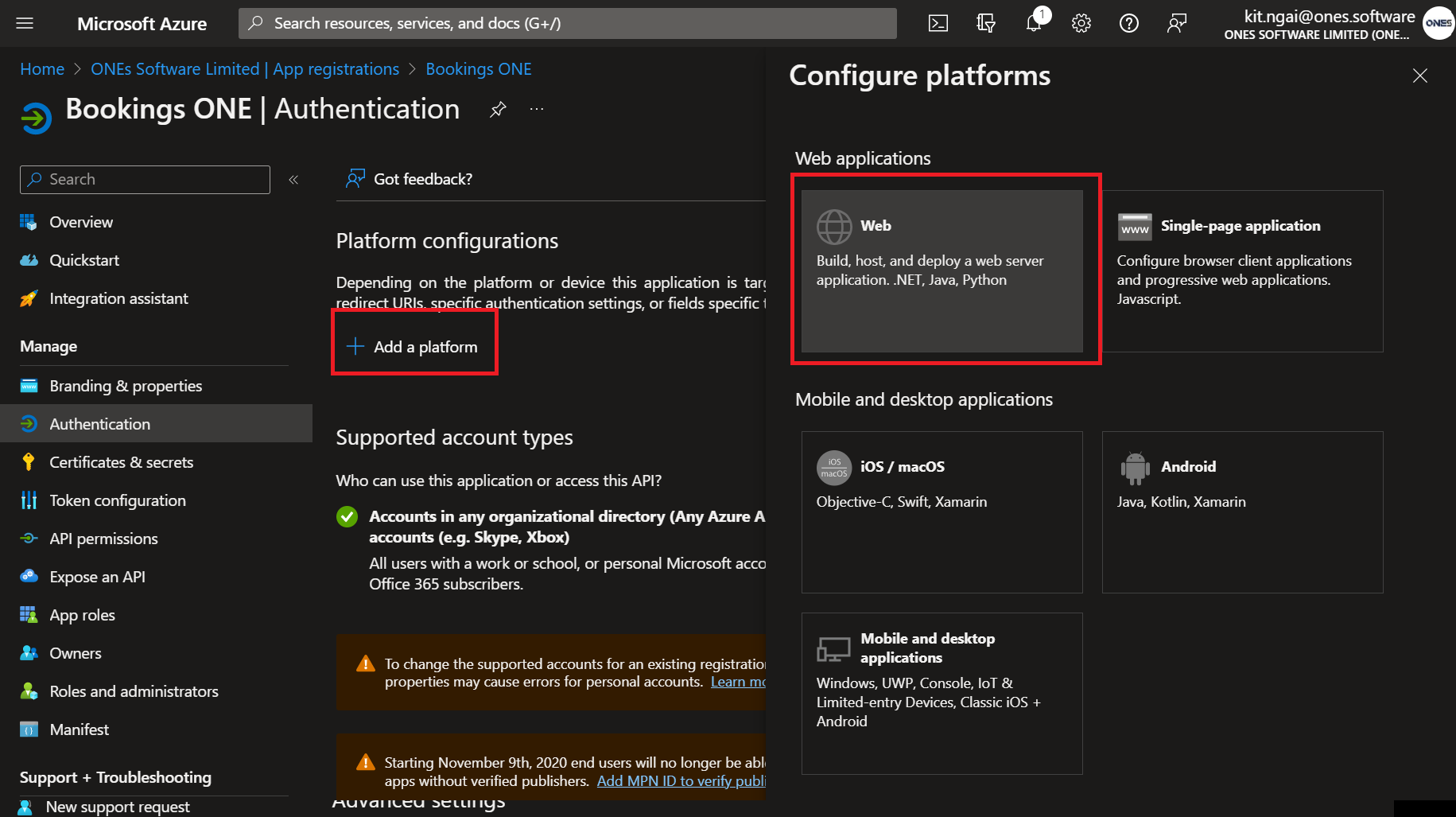 - Navigate to the AAD tenant's app registrations blade. Select your existing app for Bookings ONE