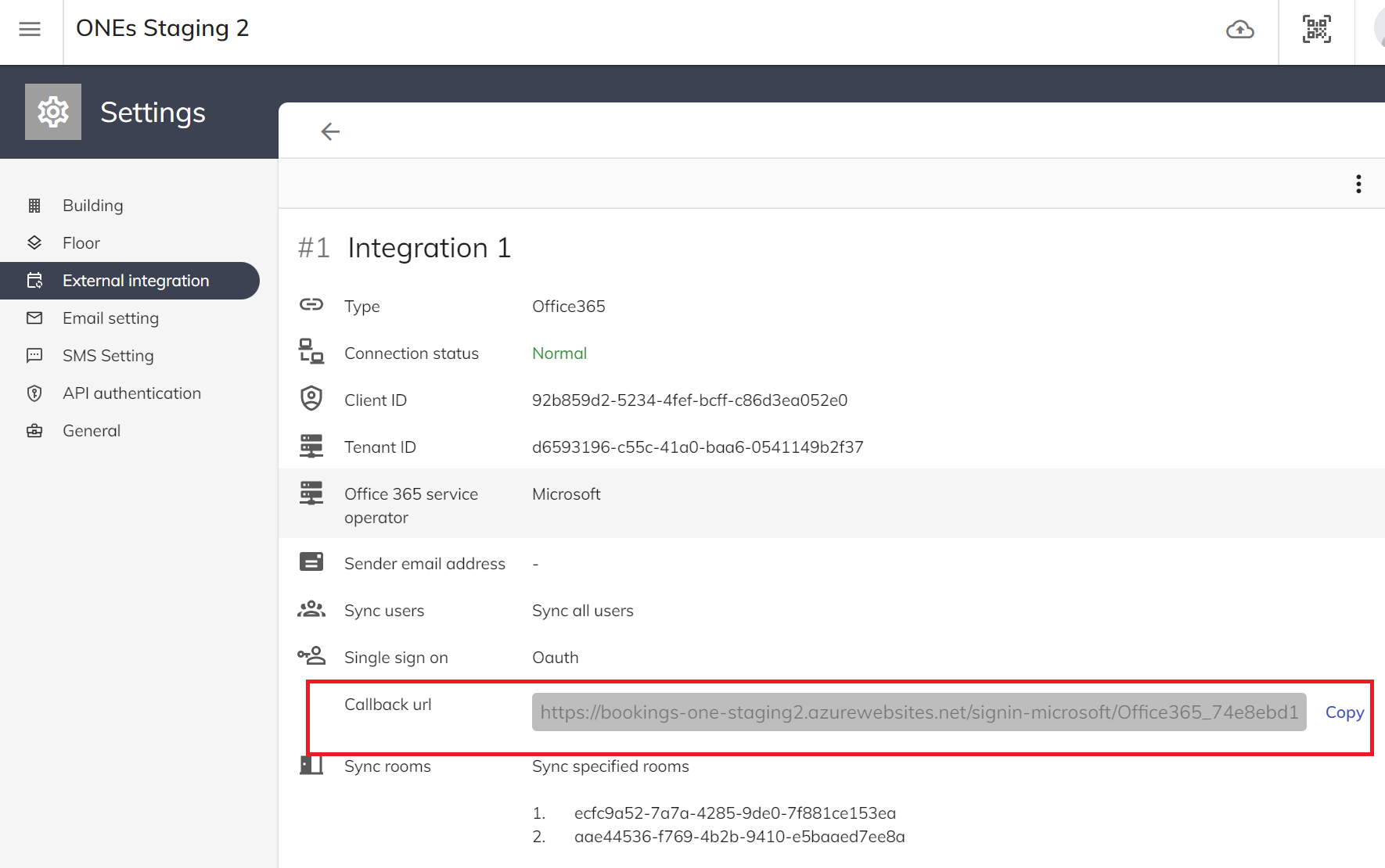 Client secretcreated in previous step, these are information for Bookings ONE to integration.