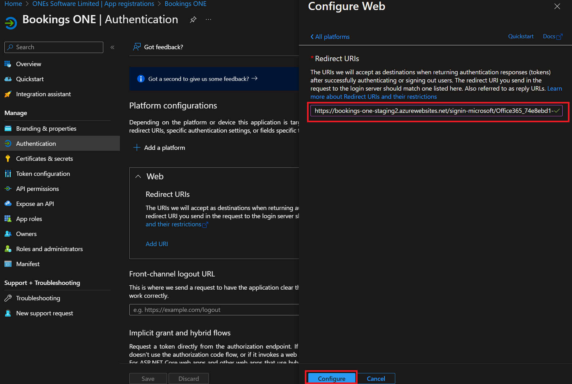 - In redirect url fill in the Bookings ONE callback url, you may find the url in integration detail