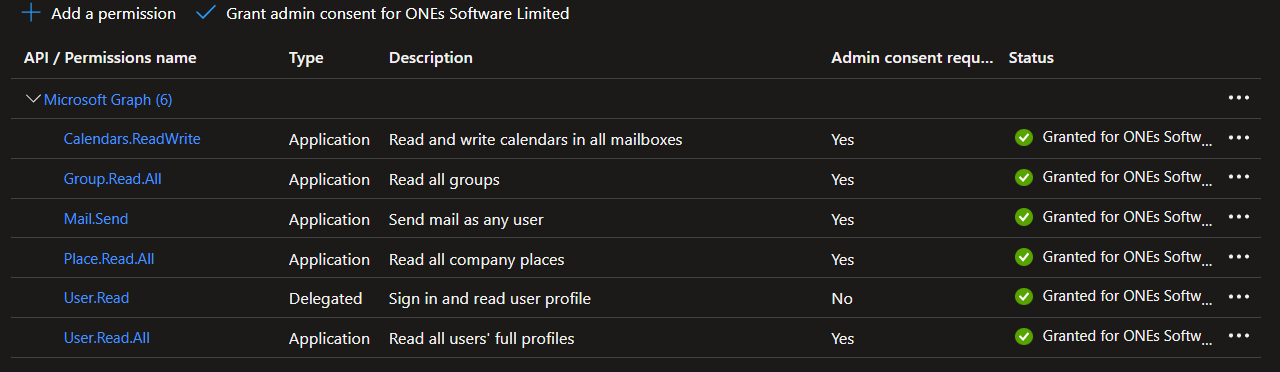 Application permissions, check the following permissions- Calendars -> Calendars.ReadWrite