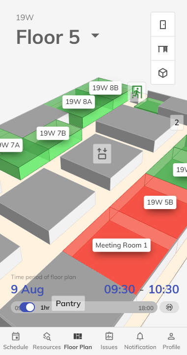 在"平面圖頁面"中,您可以清楚地了解平面圖中的實時房間狀態和可用情況。