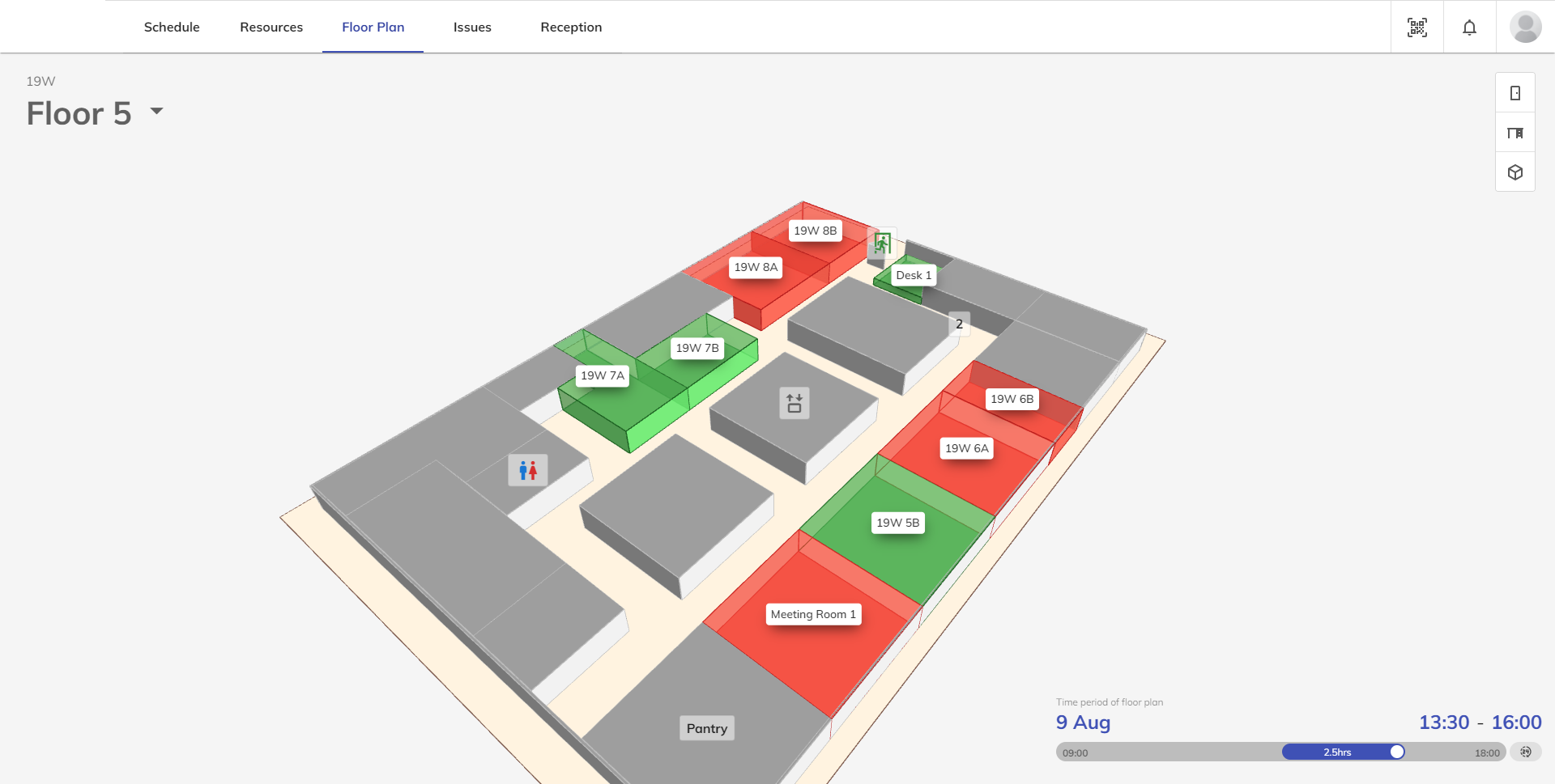 如上圖,平面圖的顏色表示資源是否可用: