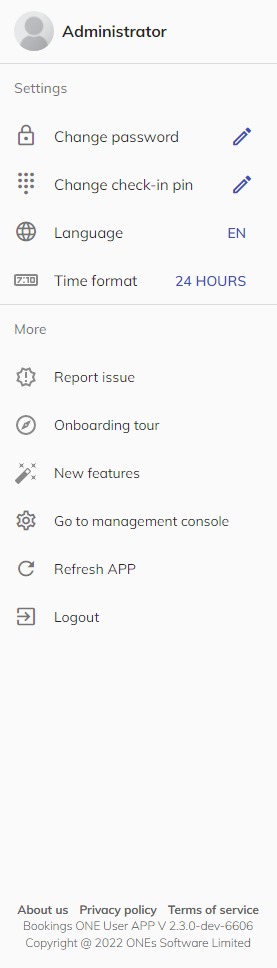 為了能夠使用 Bookings ONE 用戶APP,您首先需要擁有一個用戶帳戶。 請聯繫最高管理者或用戶管理者獲取用戶帳號。