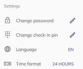 - 更改身份驗証碼: 您可以更改您的身份驗証碼。身份驗証碼用於身份驗證,這意味著您可以通過身份驗証碼進行簽到、即時預約等。身份驗証碼只接受數字,至少4個字符,最多8個字符。