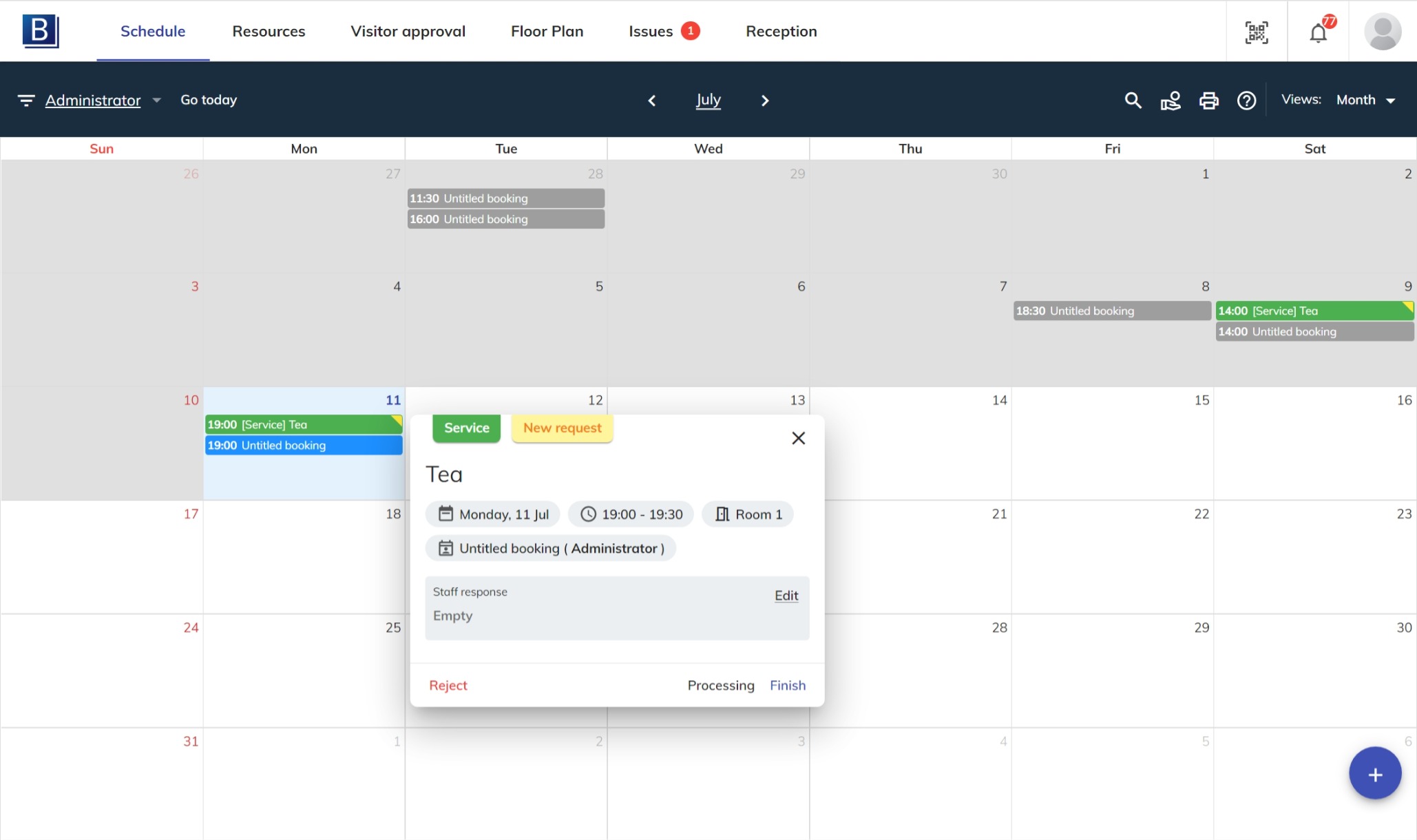 服務職員是一個響應服務請求的角色,他被授予服務職員權限。當預約被創建並需要服務時,服務職員將在"我的日程"頁面看到該服務請求。