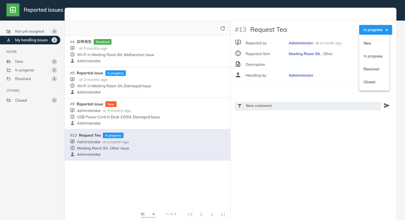 - 為了促進管理者和支援人員之間更好的溝通和協作,他們可以添加新的評論來描述進展的細節和處理中的問題。